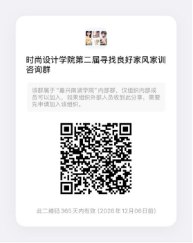 各团队负责人,组建好团队后扫码加入官方钉钉群,并将《时尚设计学院2026年“寻找良好家风家训”大学生寒假团队社会实践活动报名表》(附件2)、《时尚设计学院2026年“寻找良好家风家训”大学生寒假社会实践活动团队汇总表》(附件4)以及《时尚设计学院“寻找良好家风家训”寒假专项社会实践团队安全责任书》(附件9),以团队为单位,以“团队名称+社会实践报名”命名压缩包发至邮箱2890898500@qq.com。