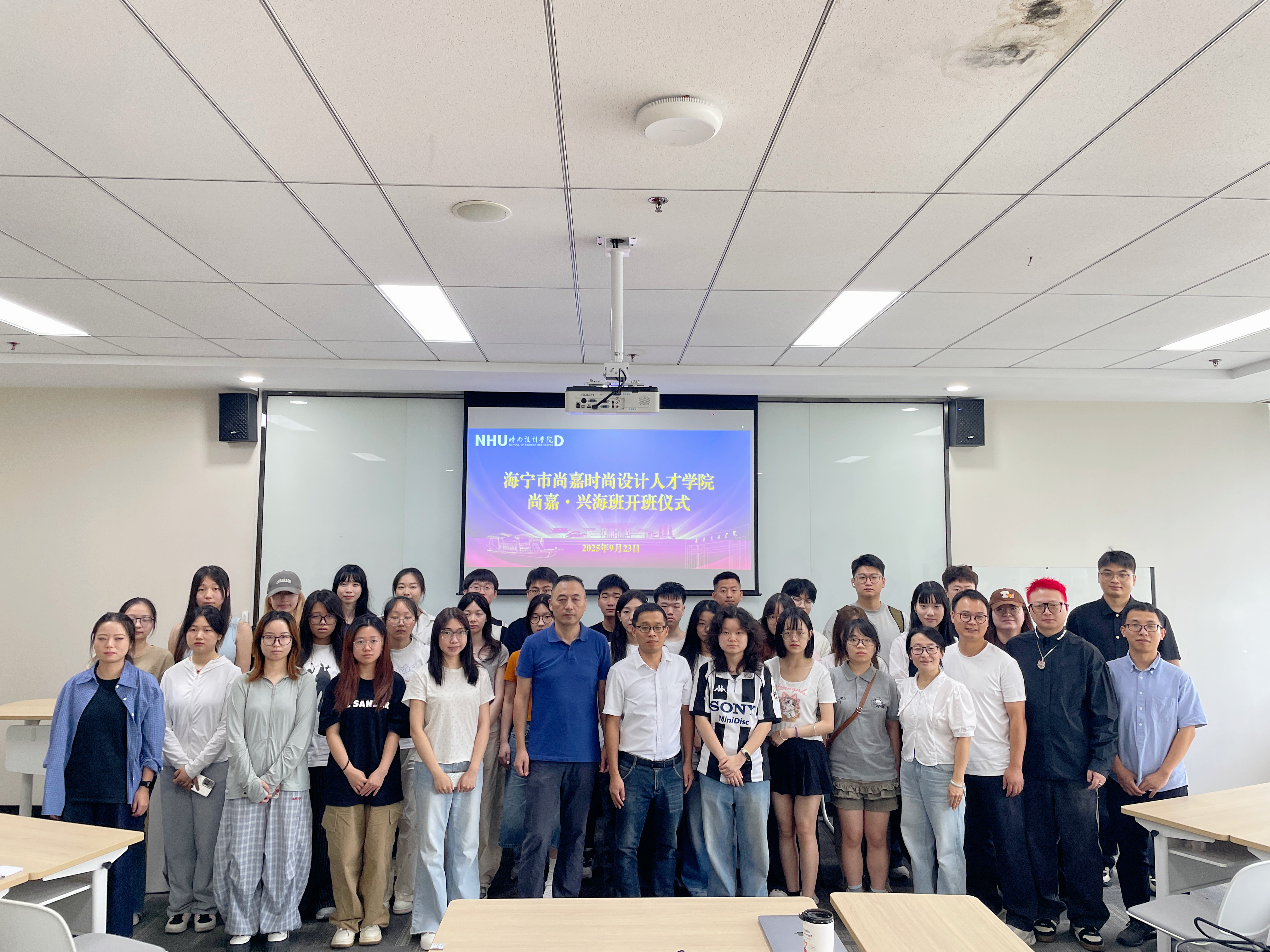 最后,全体领导、嘉宾与本期“兴海班”学员合影留念,定格下这充满希望的时刻。据悉,本期“尚嘉·兴海班”在总结首期成功经验的基础上,进一步优化了课程体系,强化了产业实践环节。相信在各方的大力支持与全体师生的共同努力下,新一期学员们定能学有所成,为海宁时尚产业注入新的青春动能。