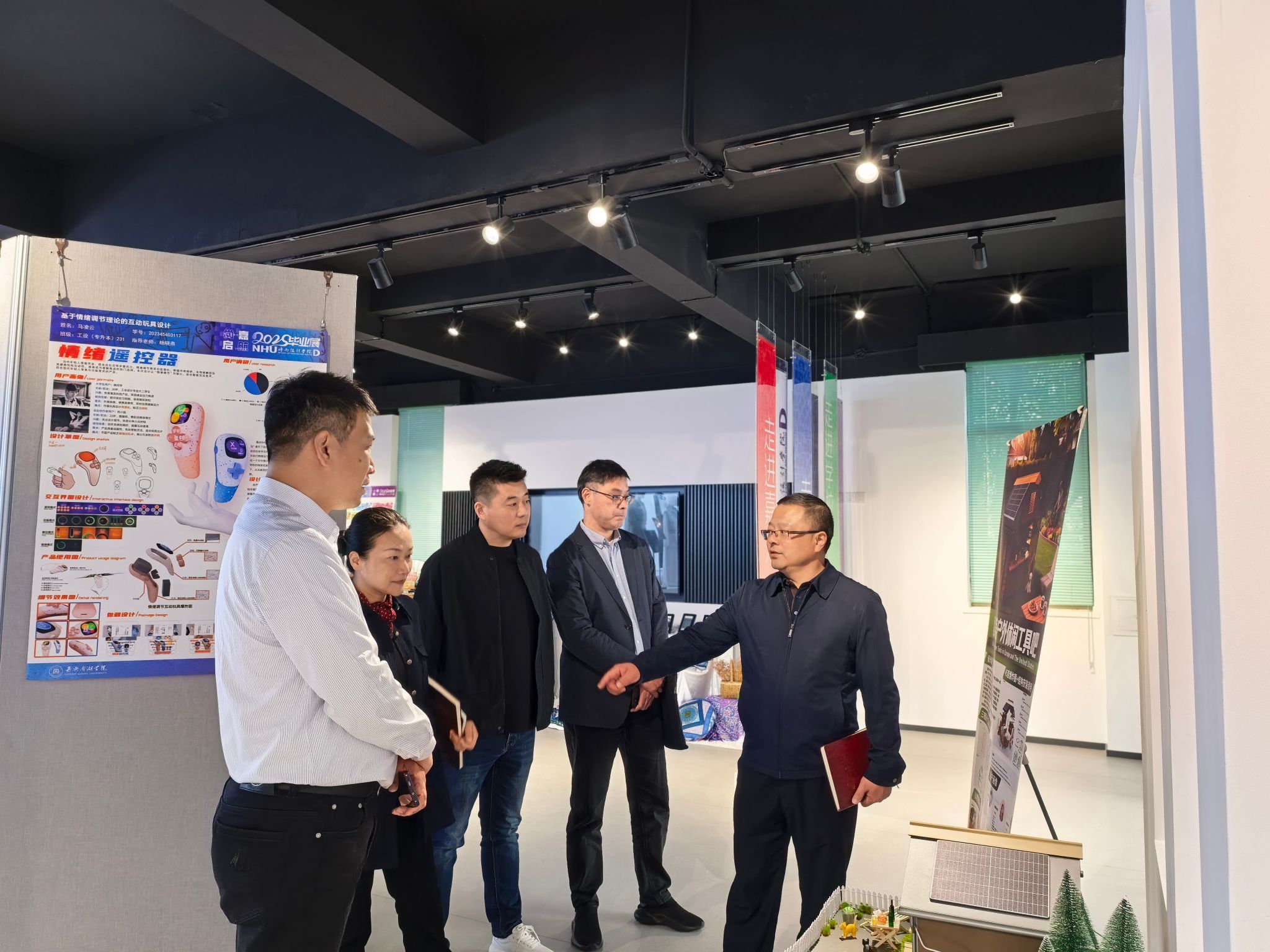 胡文蔚书记一行还现场参观了学院产教融合展厅和实验室,对学生产教融合设计作品和学科竞赛优秀作品给予了高度评价。